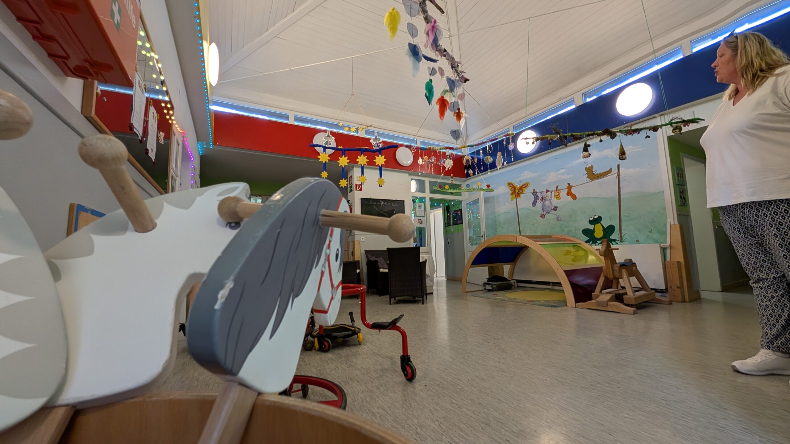 Die vier Gruppenräume strahlen Wärme und Licht aus und laden Kinder ein, neugierig die Welt zu entdecken. Jeder Raum erzählt seine eigene kleine Geschichte: Hier können sie fantasievoll bauen und konstruieren, bunte Kunstwerke entstehen lassen, in Rollenspiele eintauchen oder in gemütlichen Rückzugsbereichen zur Ruhe kommen. In den Funktionsräumen erwachen Bewegung, Musik und kreative Projekte zum Leben – und in kleinen Gruppen entstehen besondere Momente voller Freude, Staunen und gemeinsamer Entdeckungen. Jeder Tag wird so zu einem Abenteuer, in dem Kinder spielerisch die Welt erfahren und ihre eigenen Ideen lebendig werden lassen.